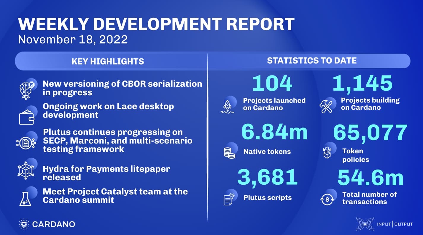 CORE TECHNOLOGY This week, the DB Sync team prepared and tested a new db-sync version for mainnet and continued integrating Conway functionality also extending its modularity. As always, see this technical development report for more details from different teams. SMART CONTRACTS This week, the Marlowe team continued working on marlowe-cardano by creating...0 up votes and 0 down votes. Total score